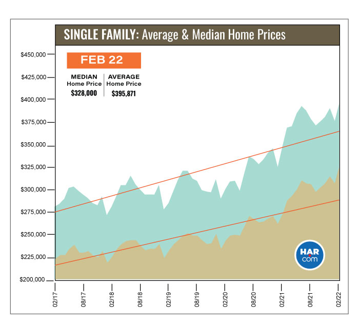 HOUSTON — (March 9, 2022) — The Houston real estate market completed its second month of the new year in positive territory, despite soaring prices and evaporating inventory. Home sales scored double-digit gains in February, but part of the strong showing was because the statistics compared to last February, when that deadly Texas freeze halted real estate activity for days, and in some cases, even longer. Undistorted by the weather factor were the continued squeeze on inventory, which returned to its all-time low, and pricing, which due to limited supply and ongoing consumer demand, soared to record highs.