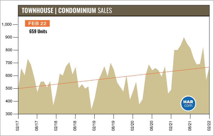“Last year’s freeze may have distorted the February sales figures, but the fact remains that home sales throughout Houston continue to trend upward despite the challenges posed by limited inventory, record-setting pricing and rising interest rates,” said HAR Chair Jennifer Wauhob with Better Homes and Gardens Real Estate Gary Greene. “We are watching closely to see how the local housing market may be affected this month by surging oil prices and some of the other economic fallout of the Russia-Ukraine conflict.”